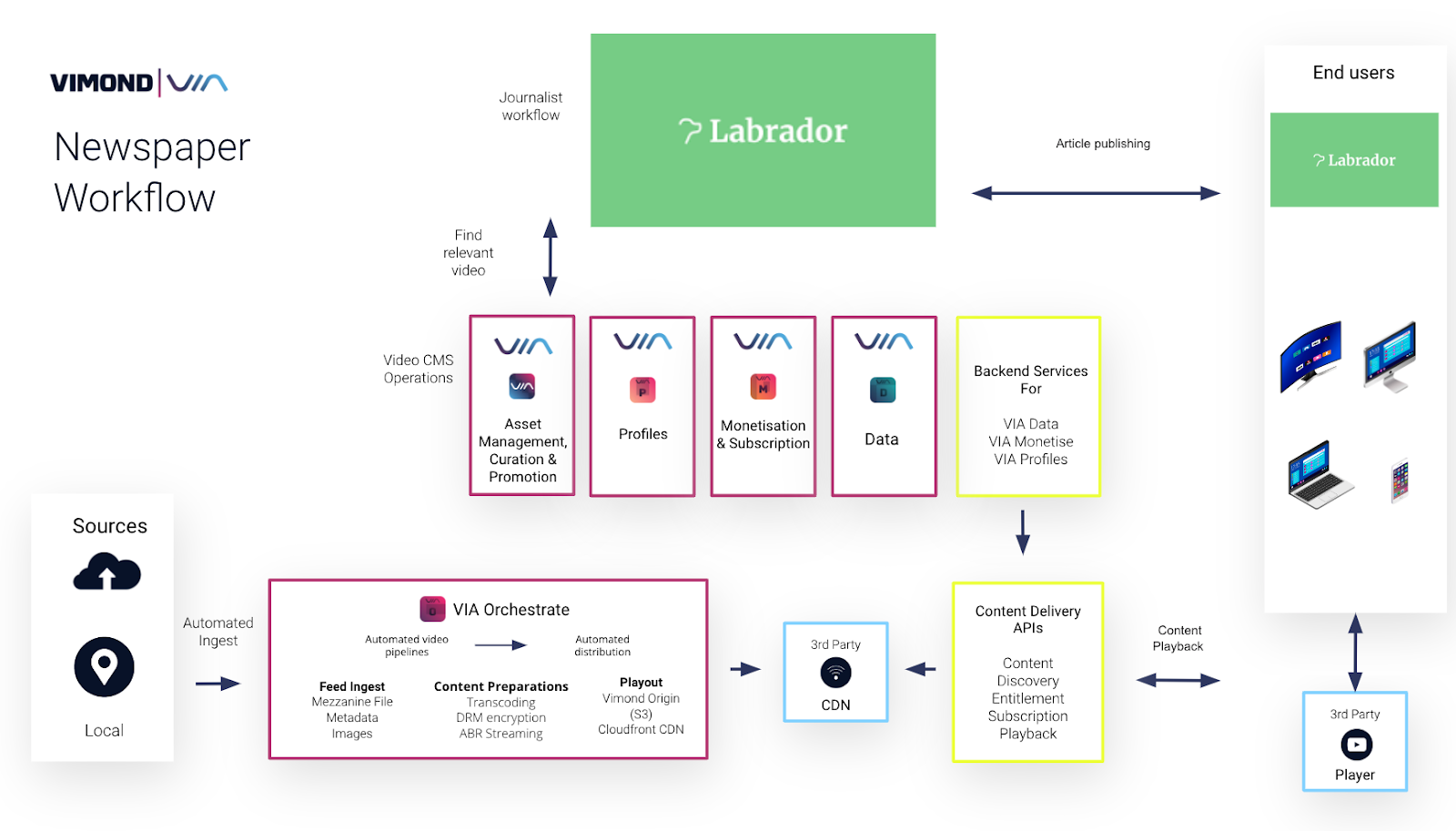 Combining text and video publishing in the same system is a challenging and time-consuming process requiring multiple teams' expertise. At Labrador and Vimond, we understand this struggle and have created a solution that seamlessly integrates the capabilities of both web and video content management systems into one. It will become increasingly important for newsrooms to adopt the content management software that powers their programming and publishing workflows in 2023 and beyond. Our joint solution permits editorial teams to quickly and efficiently produce articles centered around videos, simplifying your workflows and saving you valuable time.